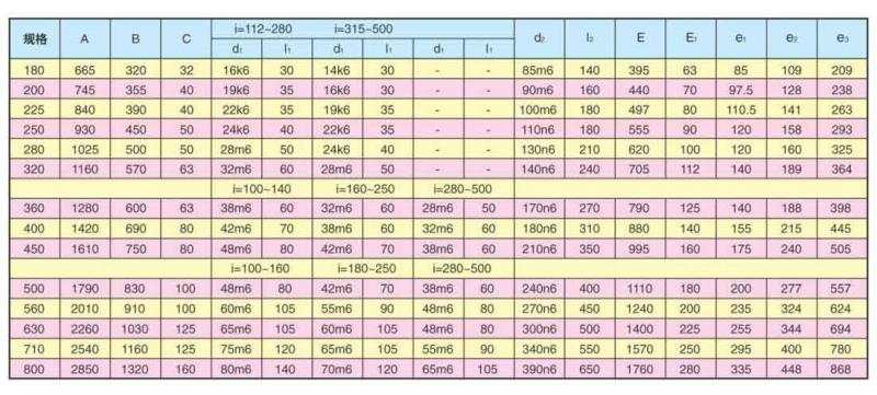 速比有100、112、125、140、160、180、200、224、250、280、315、355、400、450、500